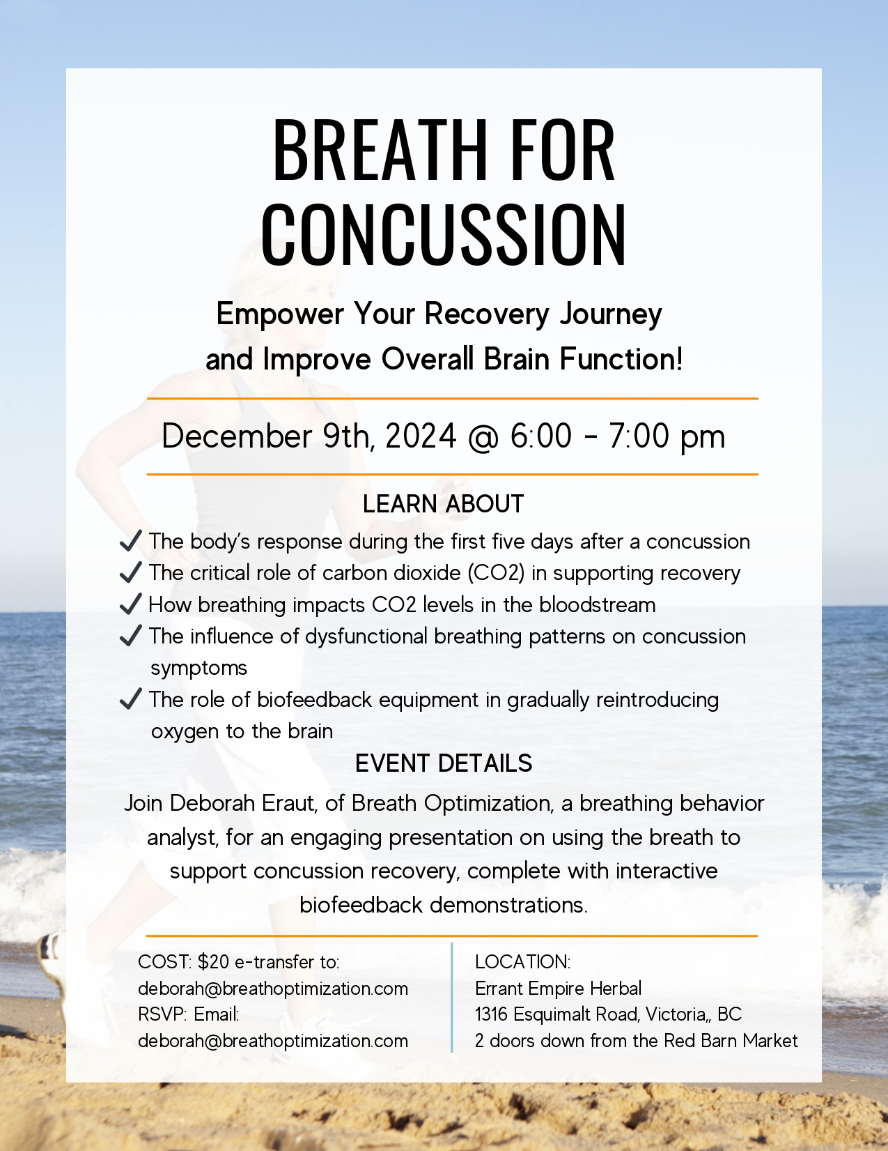 BREATH FOR CONCUSSION Empower Your Recovery Journey and Improve Overall Brain Function! December 9th, 2024 @ 6:00 - 7:00 pm LEARN ABOUT ✔ The body’s response during the first five days after a concussion ✔ The critical role of carbon dioxide (CO2) in supporting recovery ✔ How breathing impacts CO2 levels in the bloodstream ✔ […]